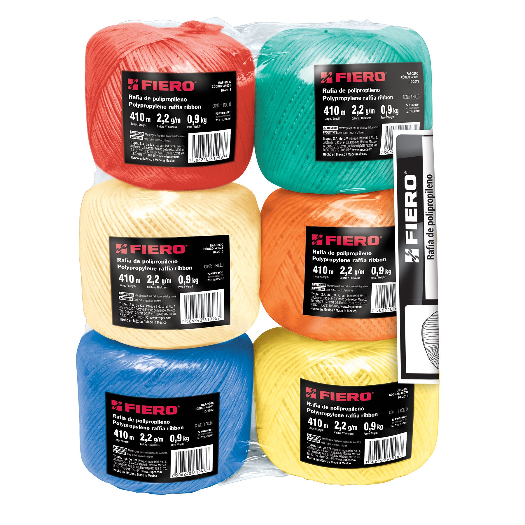 Rafia colores surtidos, calibre 2.2 g/m, 410 m