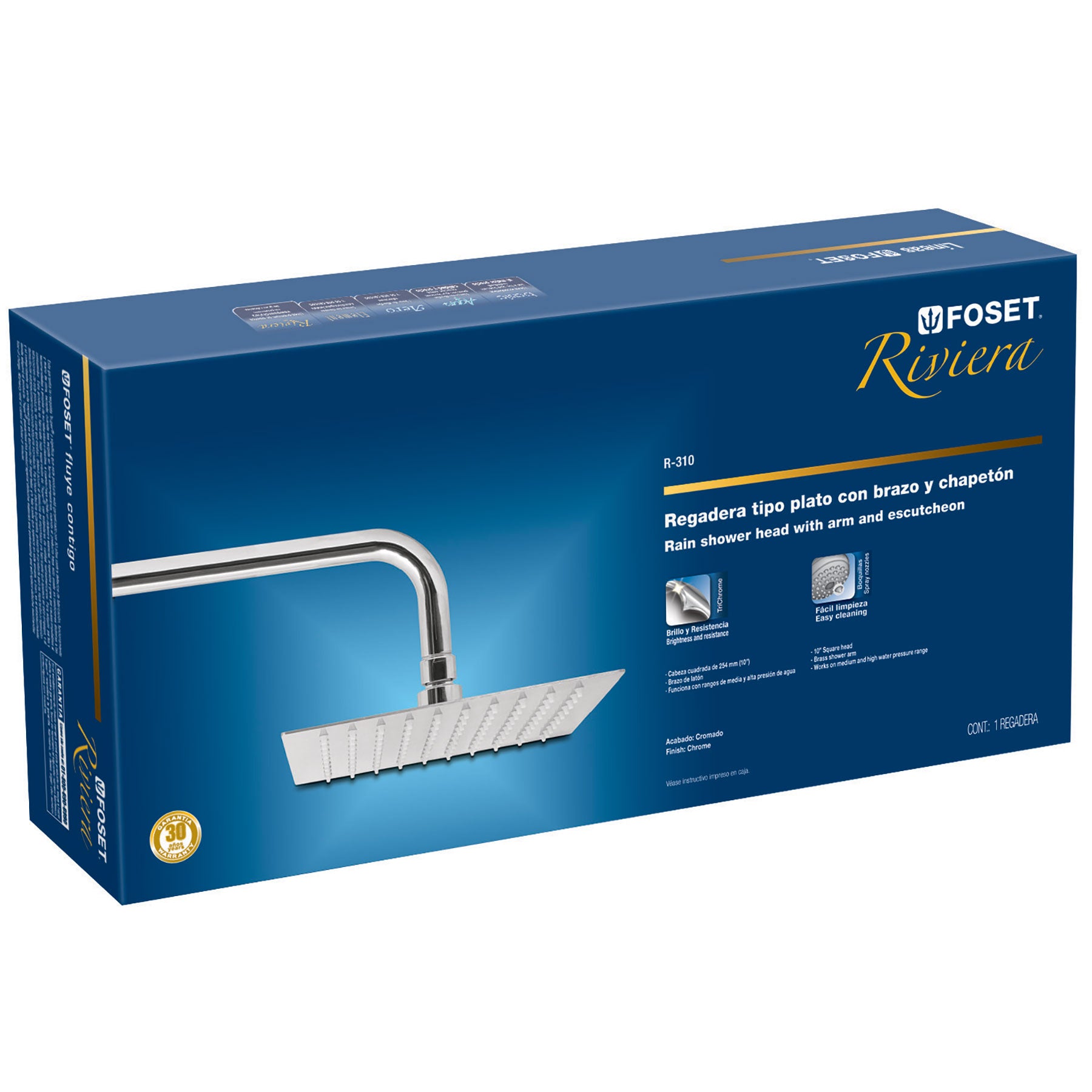 Regadera acero inoxidable, 10", con brazo, cromado, Riviera