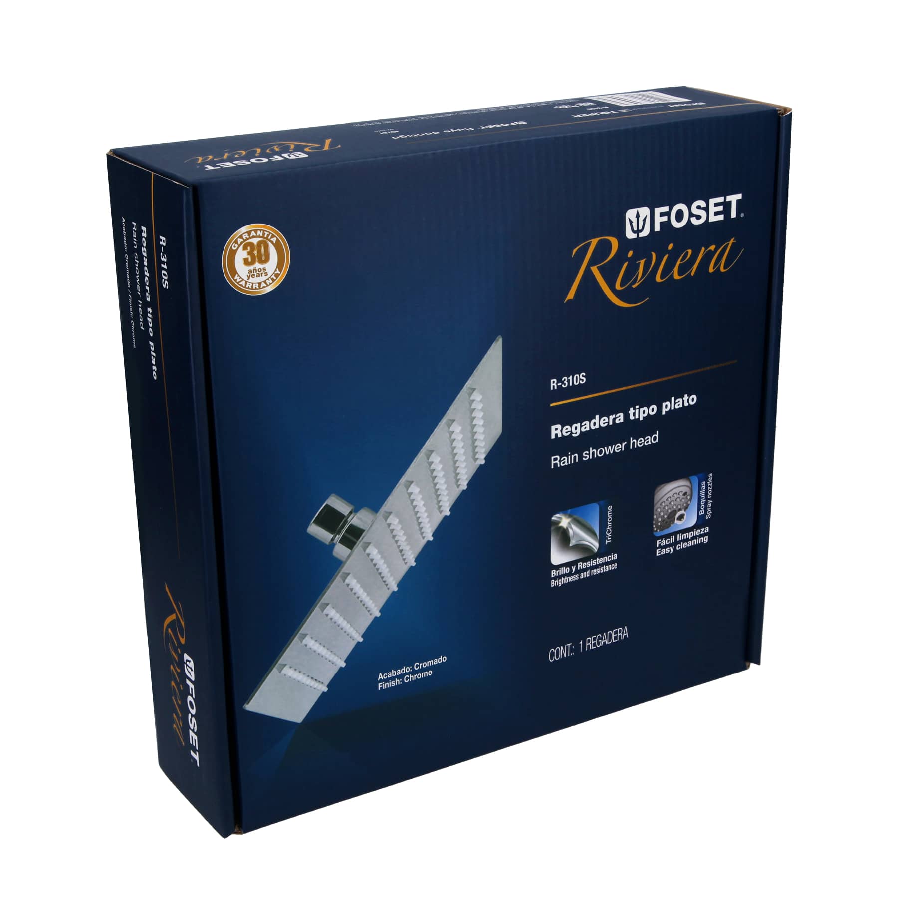 Regadera acero inoxidable, 10", sin brazo, cromado, Riviera
