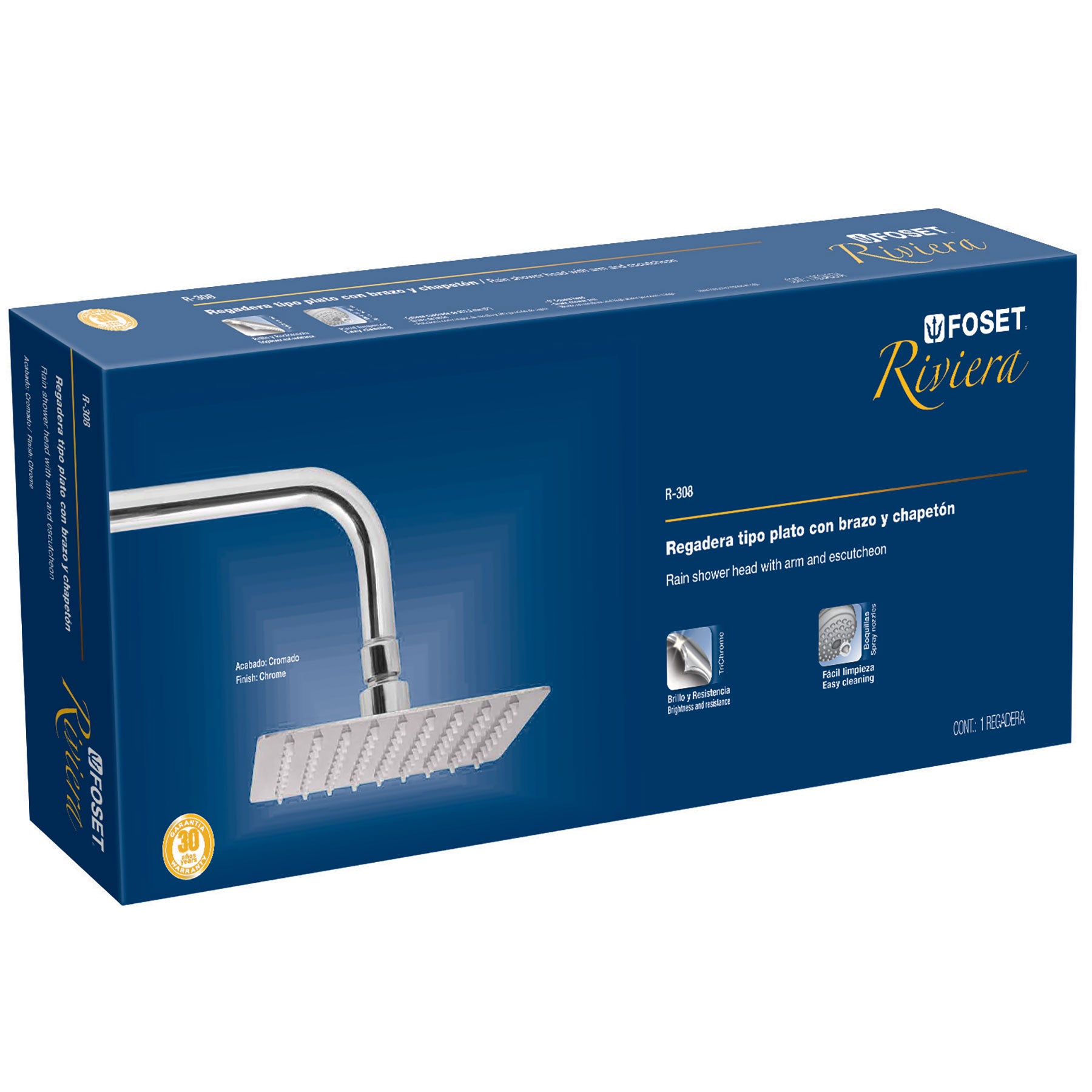 Regadera acero inoxidable, 8", con brazo, cromado, Riviera