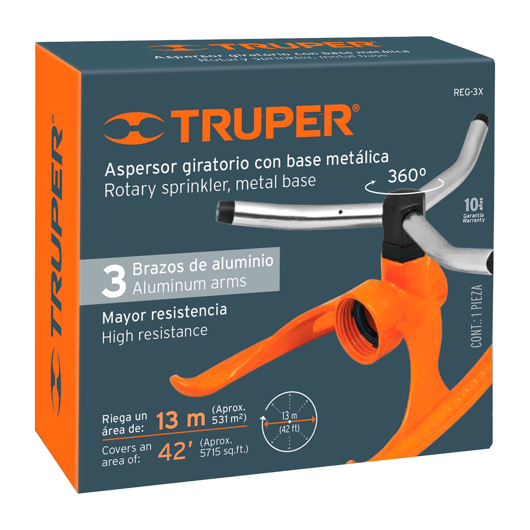 - 3 Brazos de aluminio con mayor resistencia que aseguran una cobertura total del área de riego