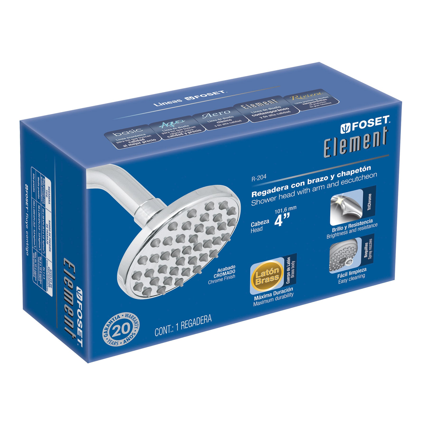 Regadera redonda, 4", con brazo, Element