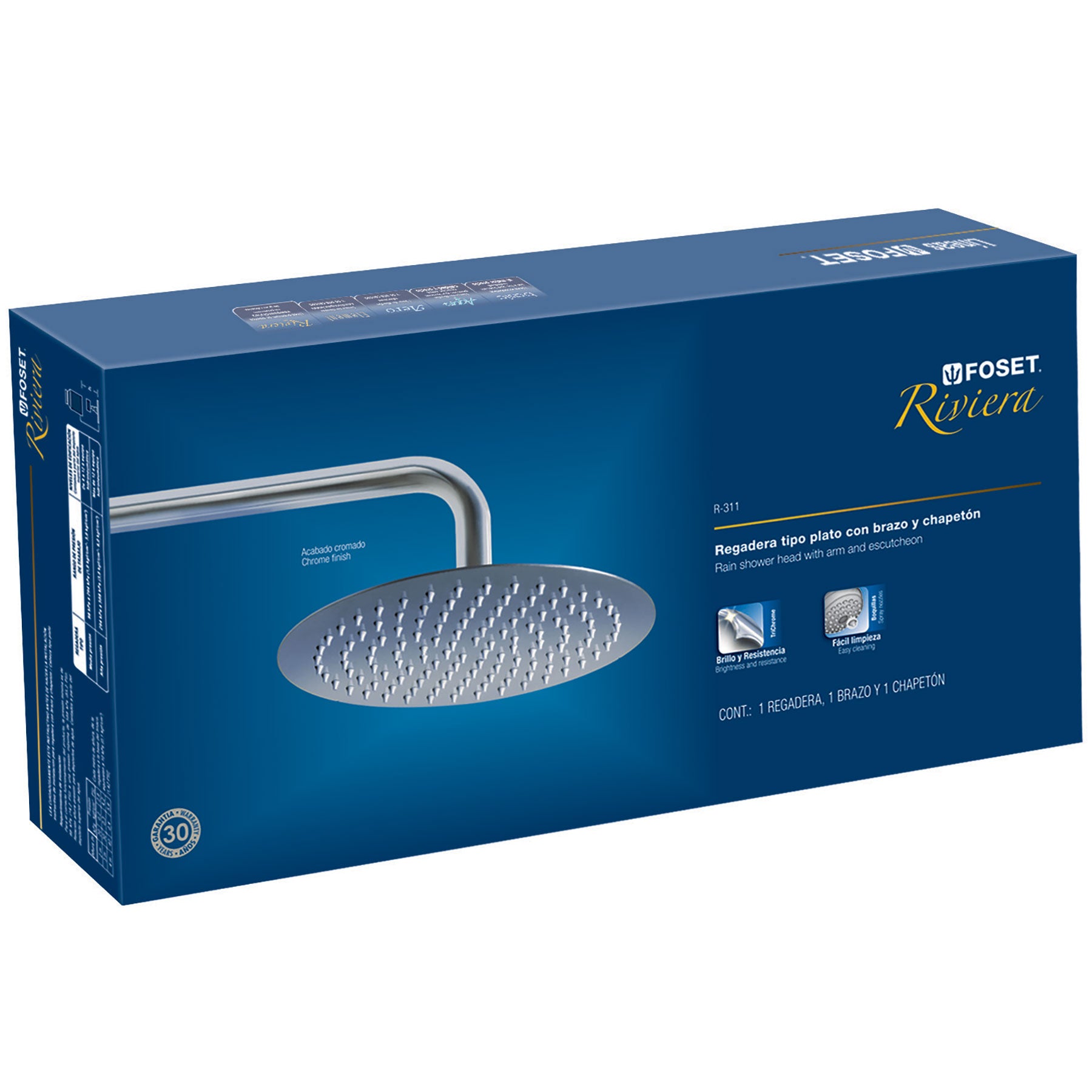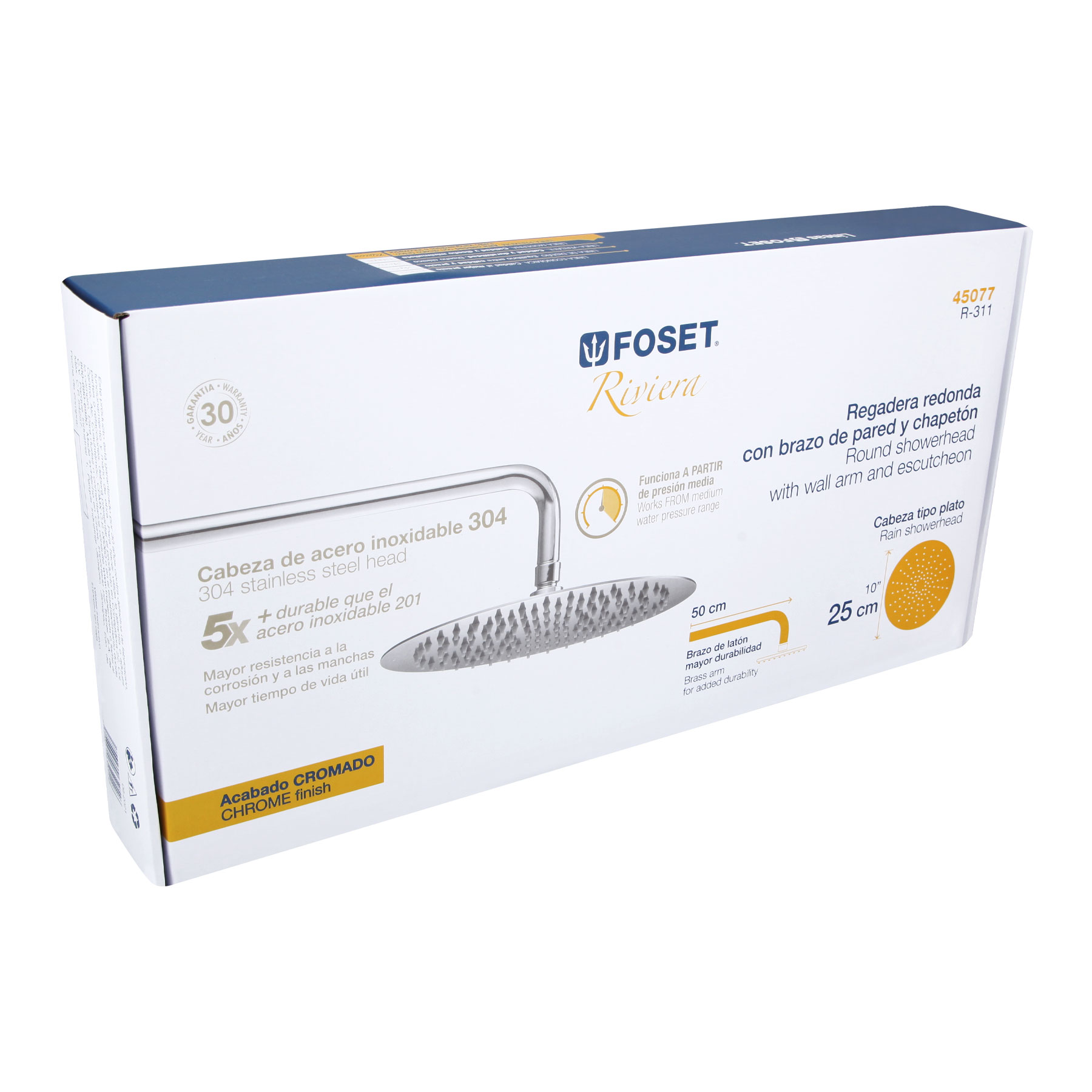 Regadera redonda, acero inoxidable, 10", cromada, Riviera