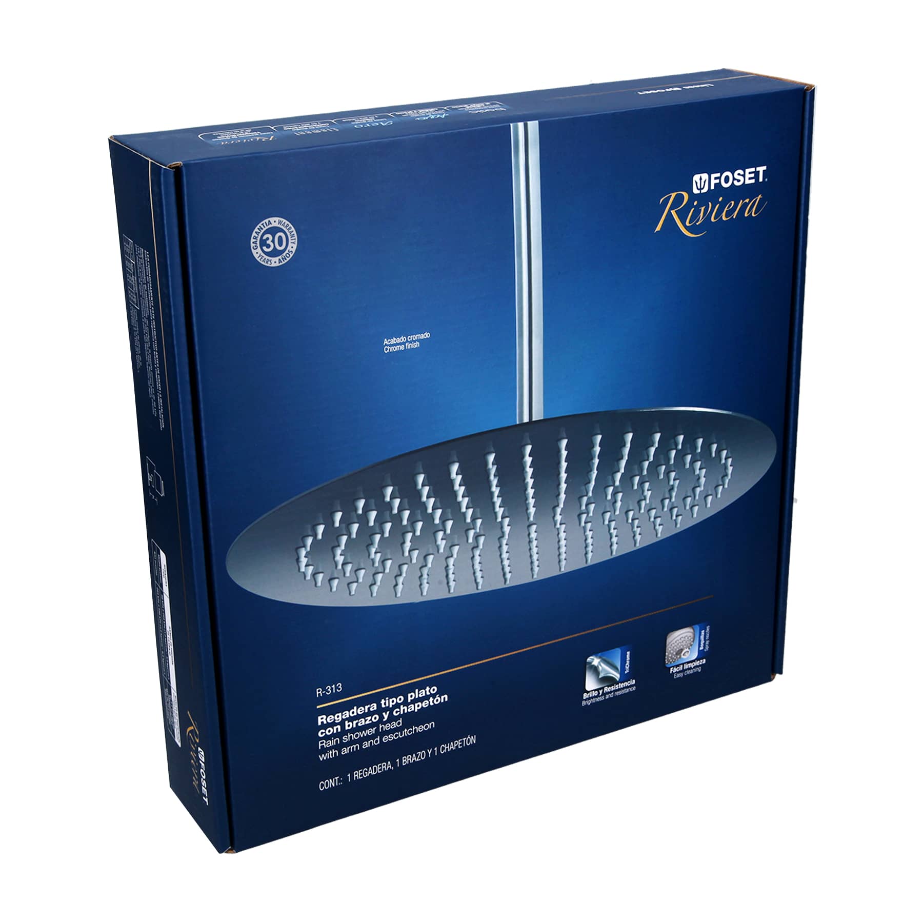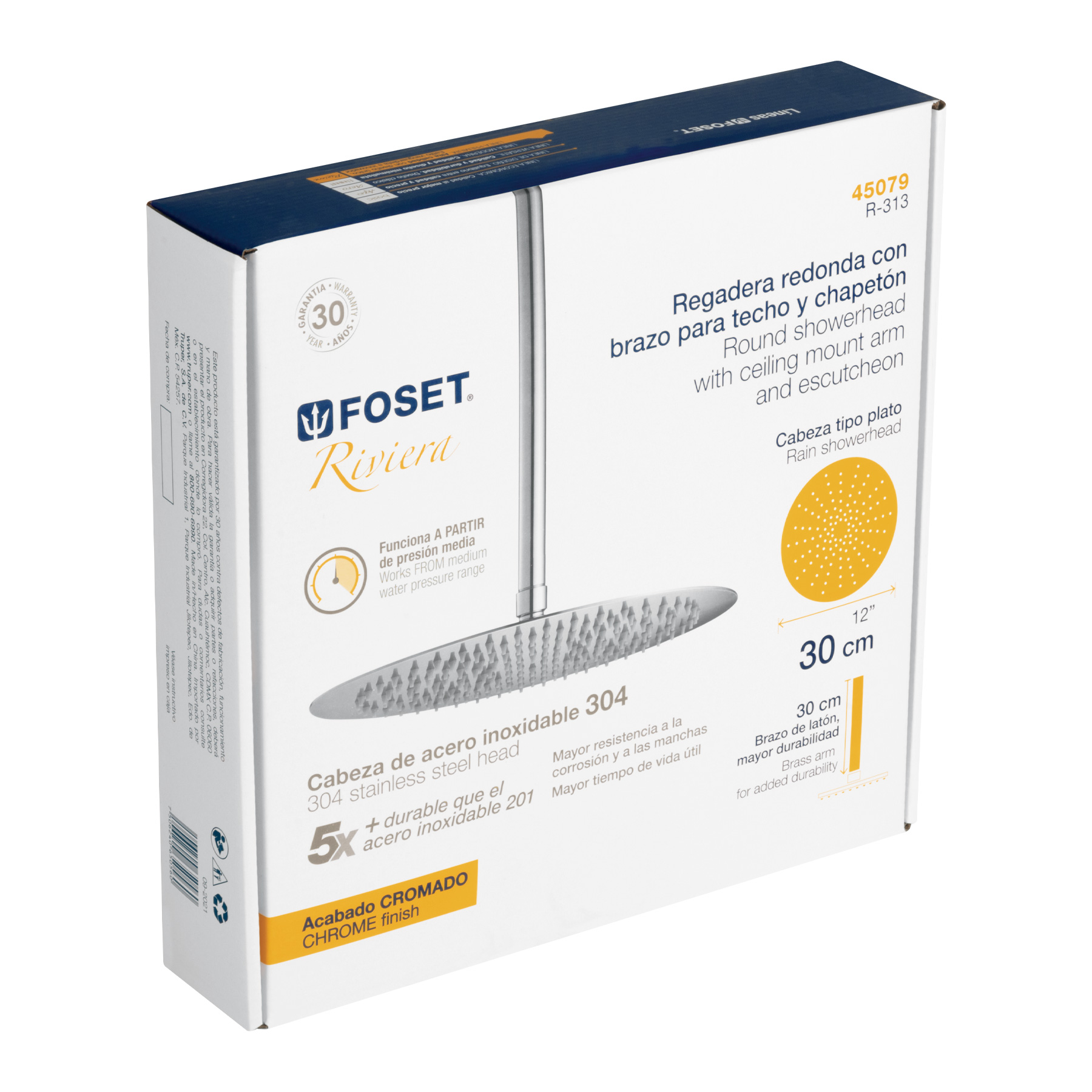 Regadera redonda, acero inoxidable, 12", cromada, Riviera