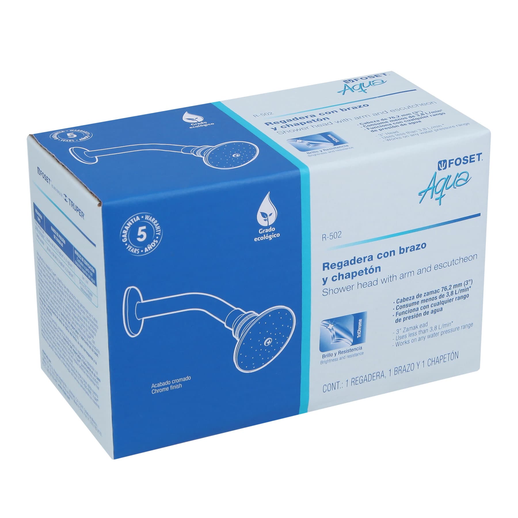 Regadera redonda, zamak, 3" con brazo, Aqua