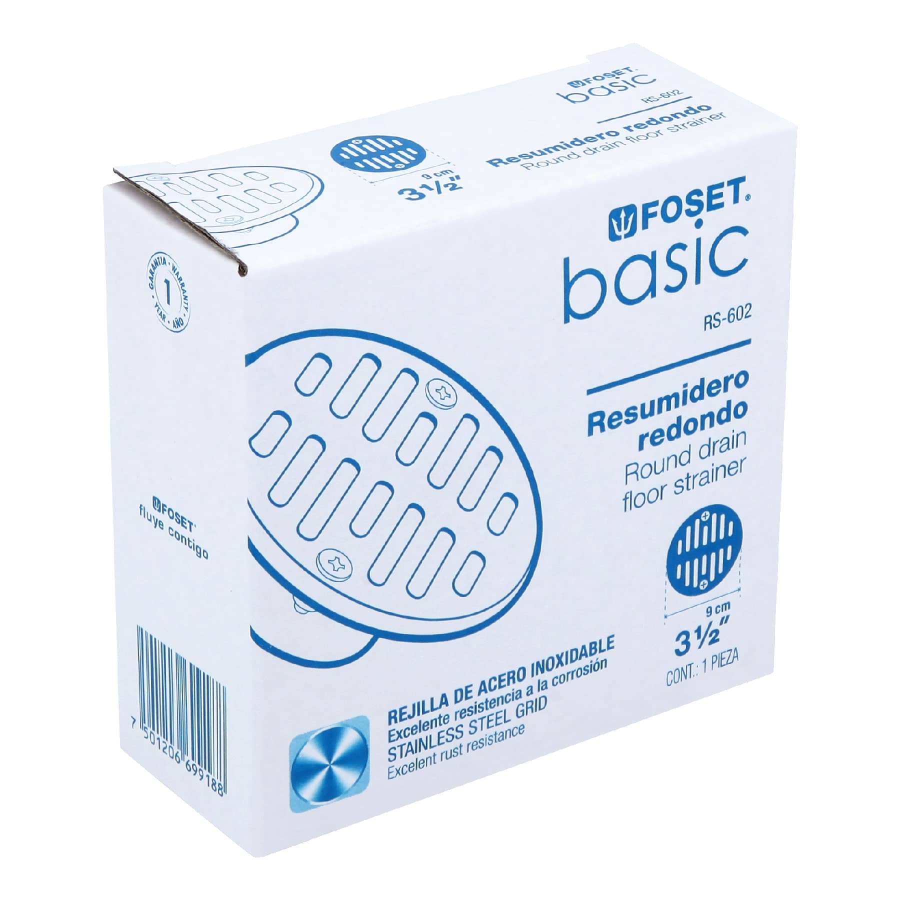 Resumidero de zamac, redondo, 3-1/2"