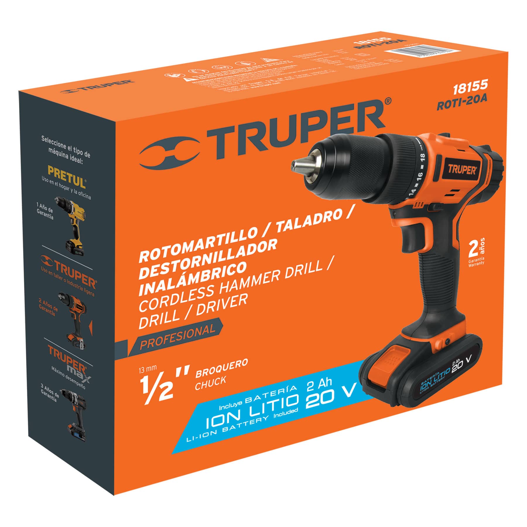 Rotomartillo inalámbrico, batería ion litio, 20 V, 1/2"