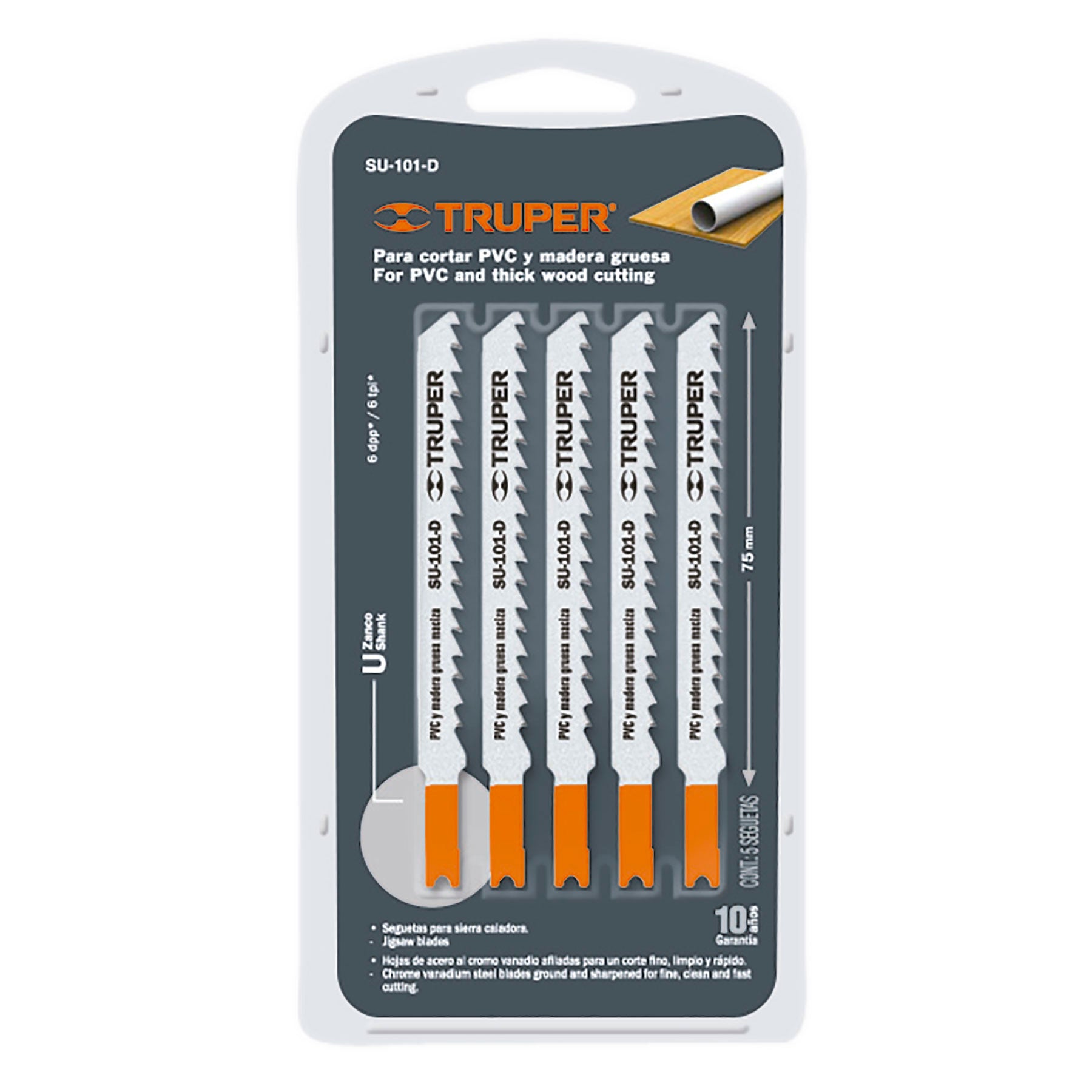 Segueta caladora, cortes rectos madera, zanco u, 6dpp, 5 pzas