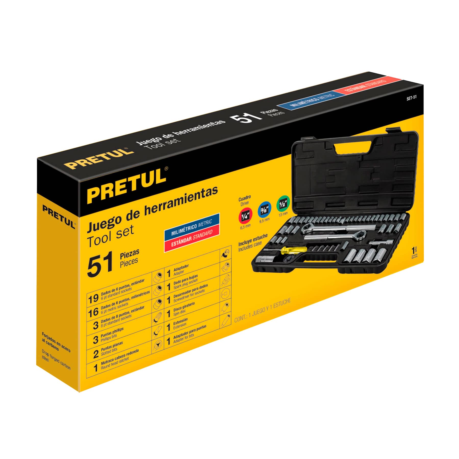 Juego de herramientas para mecánico, 51 piezas, Pretul