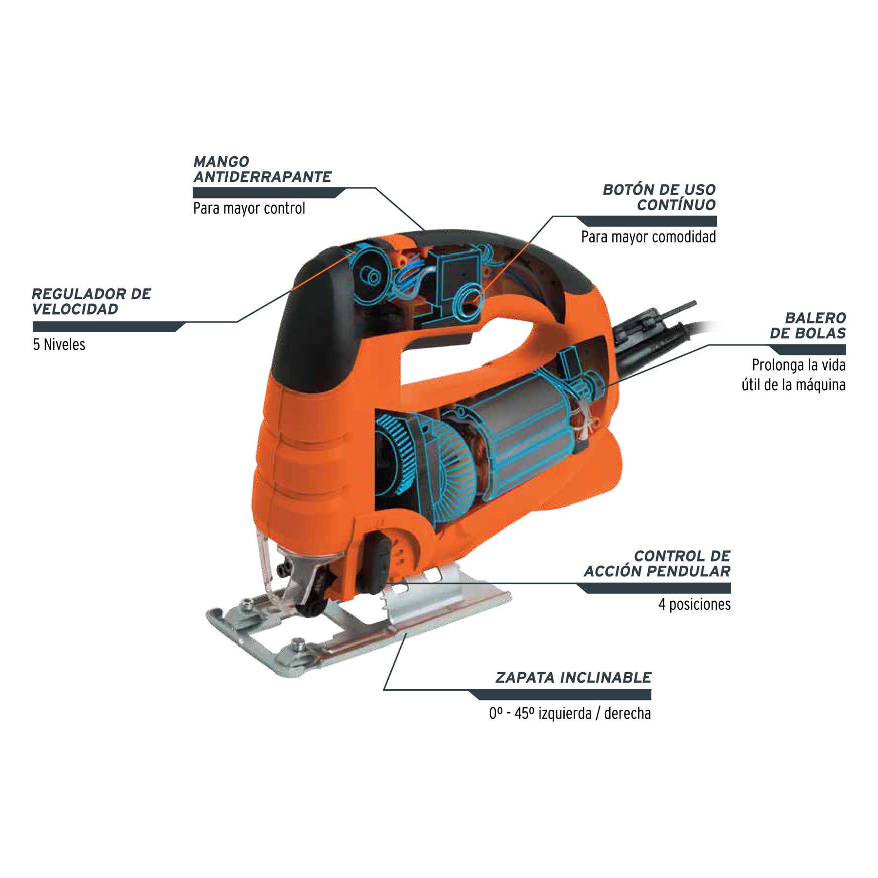 - Motor de 550 W, montado sobre balero de bolas para mayor vida útil y mejor desempeño