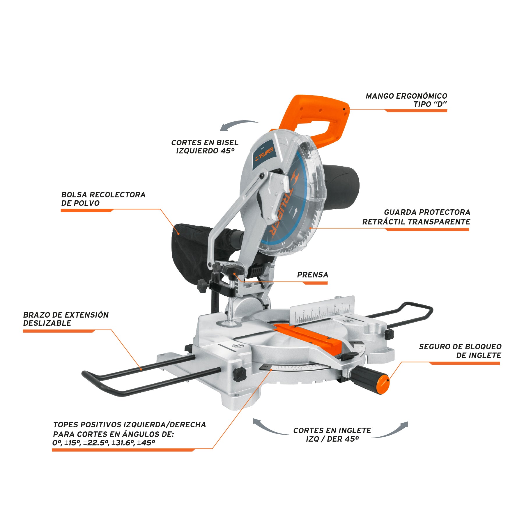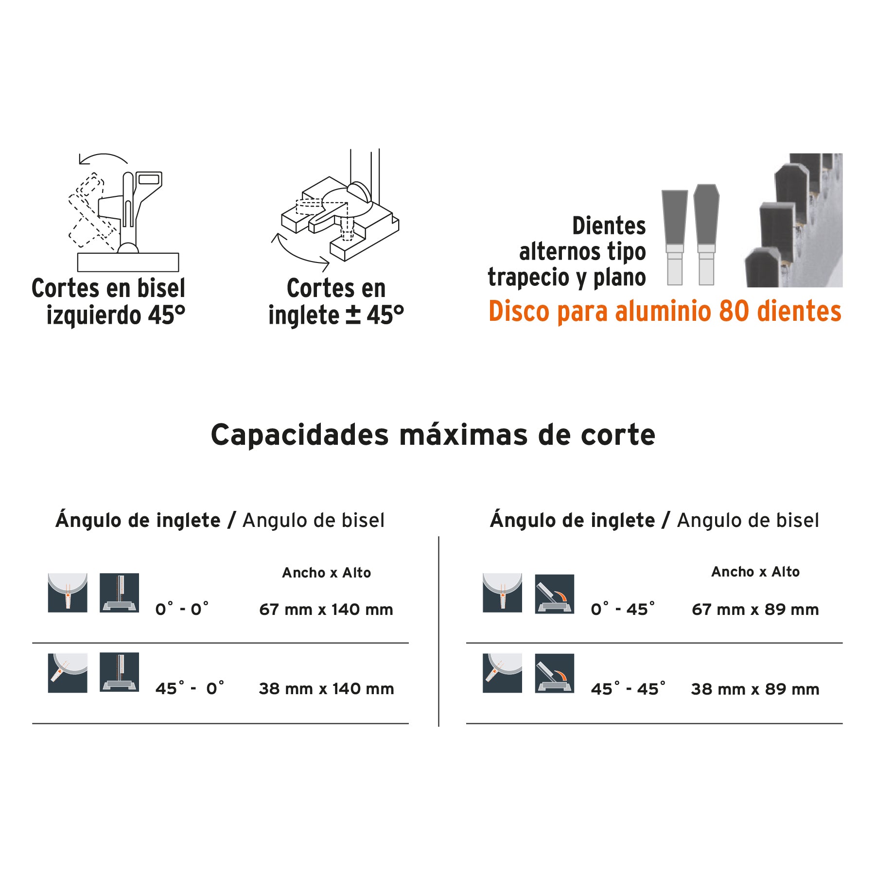 | Corte en inglete | 0° a 45° Izquierda / Derecha |
