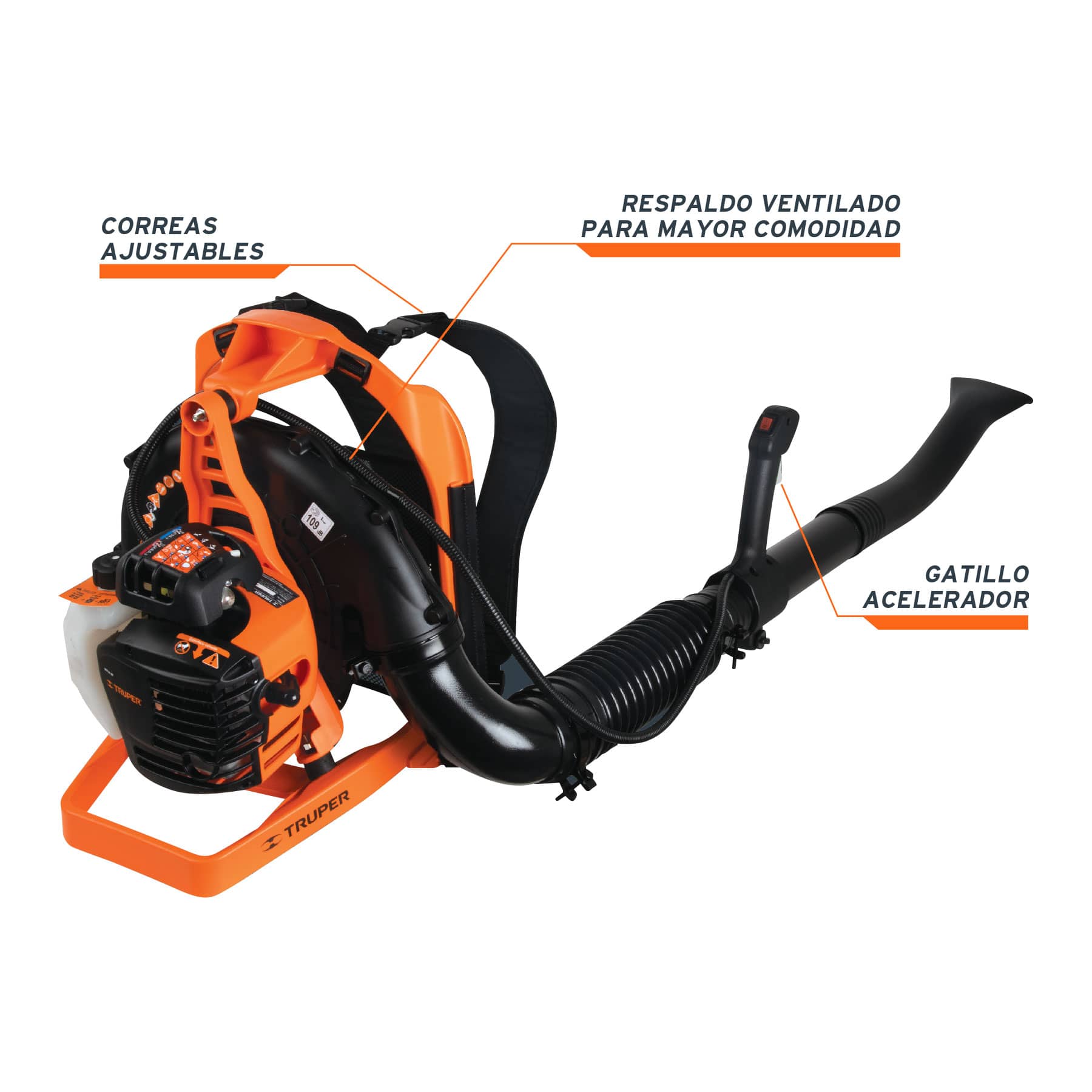 - Soplado de gran alcance y fácil dirección por su forma de mochila