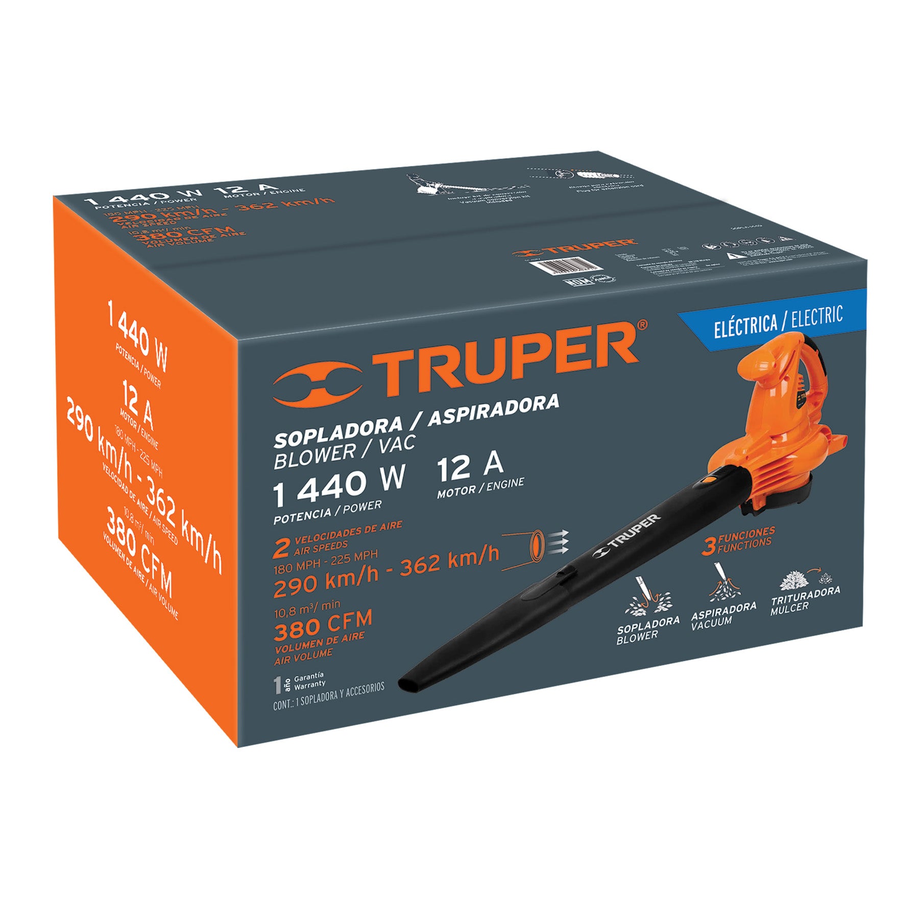 Sopladora/Aspiradora eléctrica 1, 440W, con bolsa recolectora