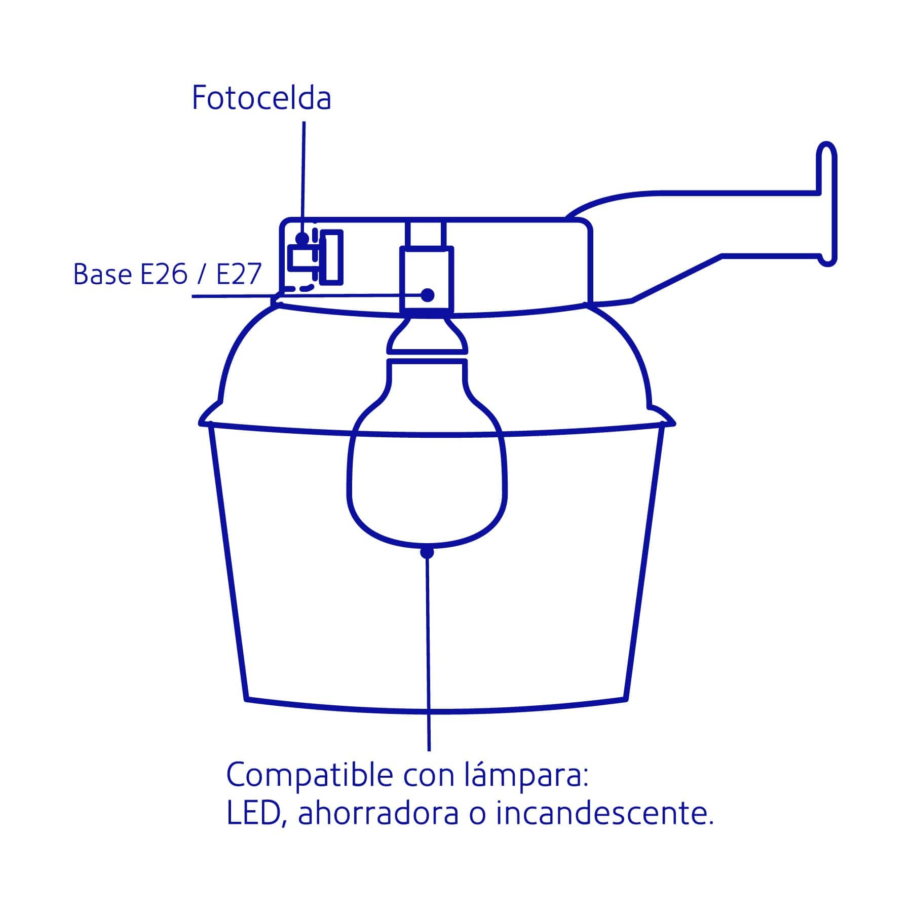 - Fotocelda de encendido automático, se enciende al anochecer y se apaga al amanecer