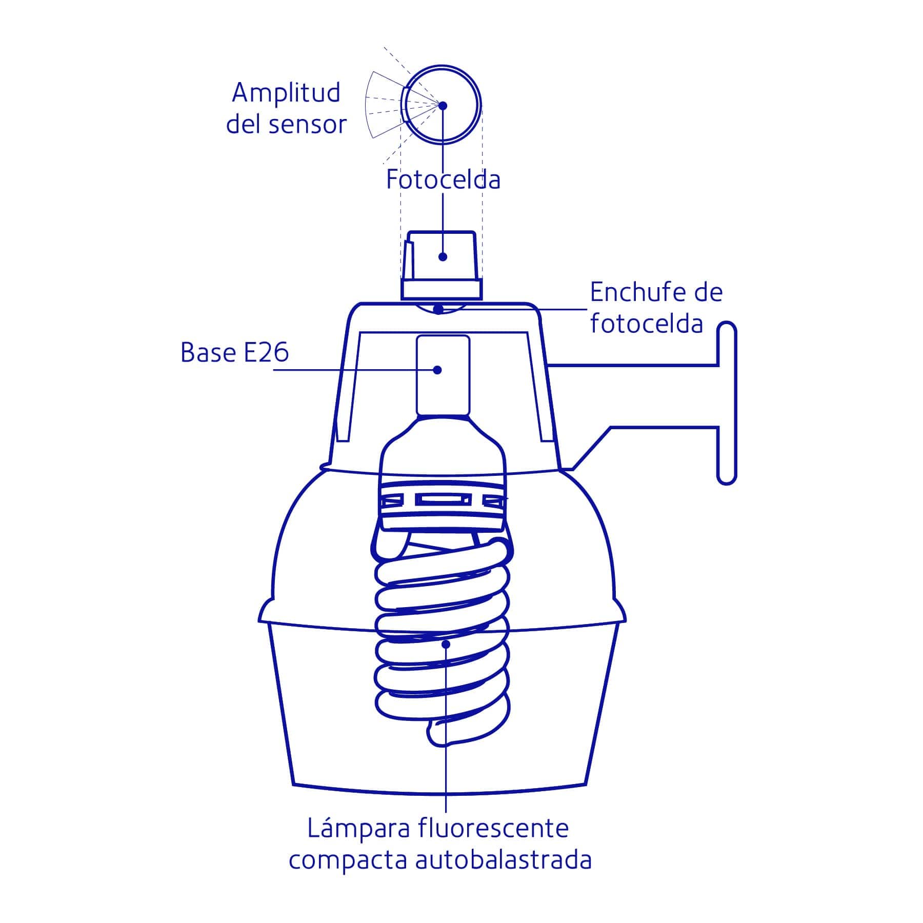 - Fotoceldas de encendido automático, se enciende al anochecer y se apaga al amanecer