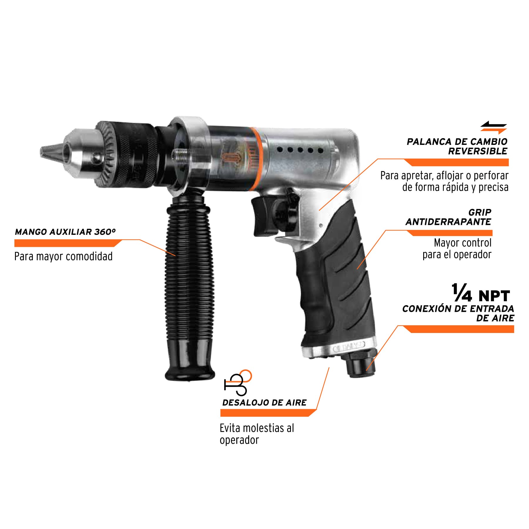 Taladro neumático reversible, 1/2"