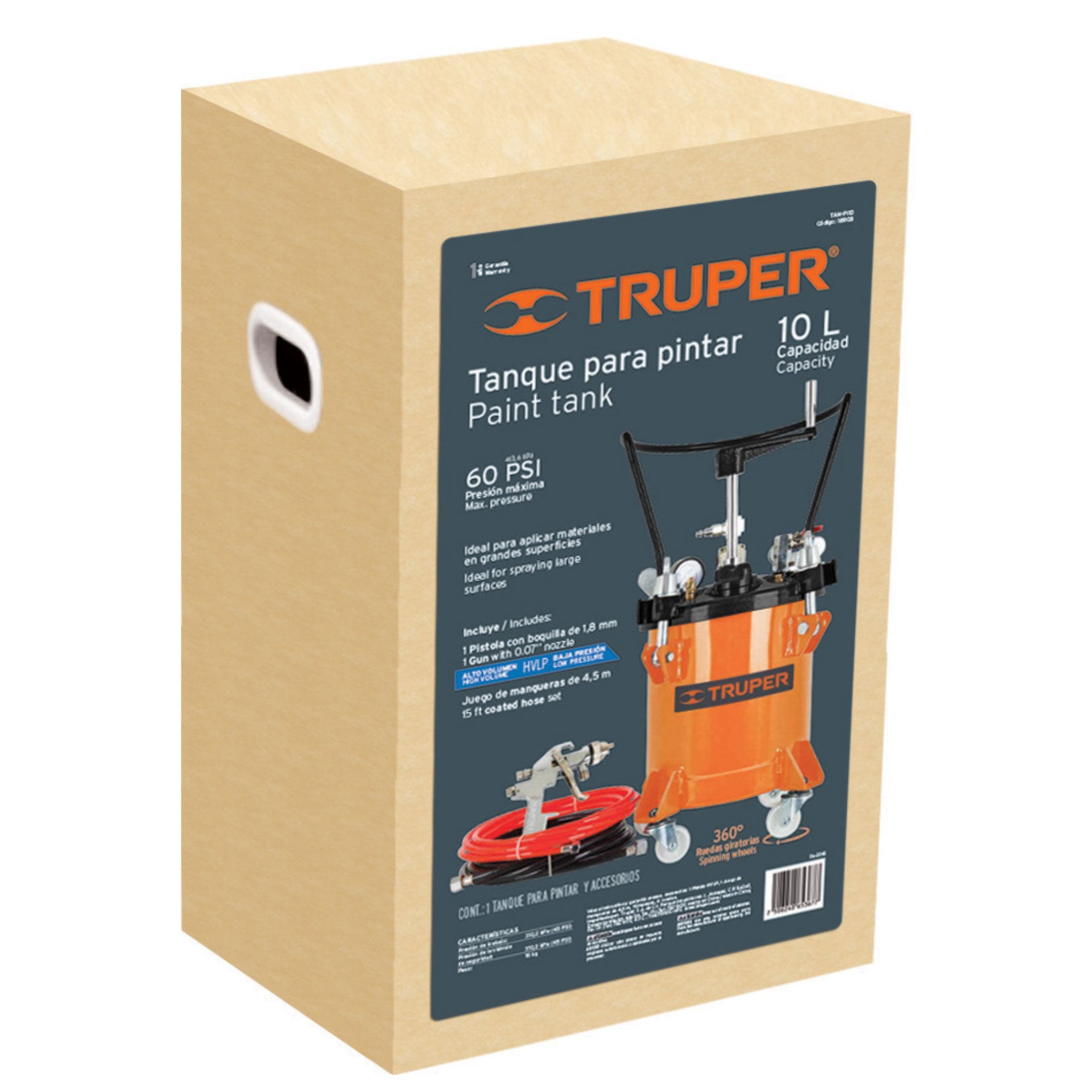 Tanque para pintura con manguera y pistola, 10 litros