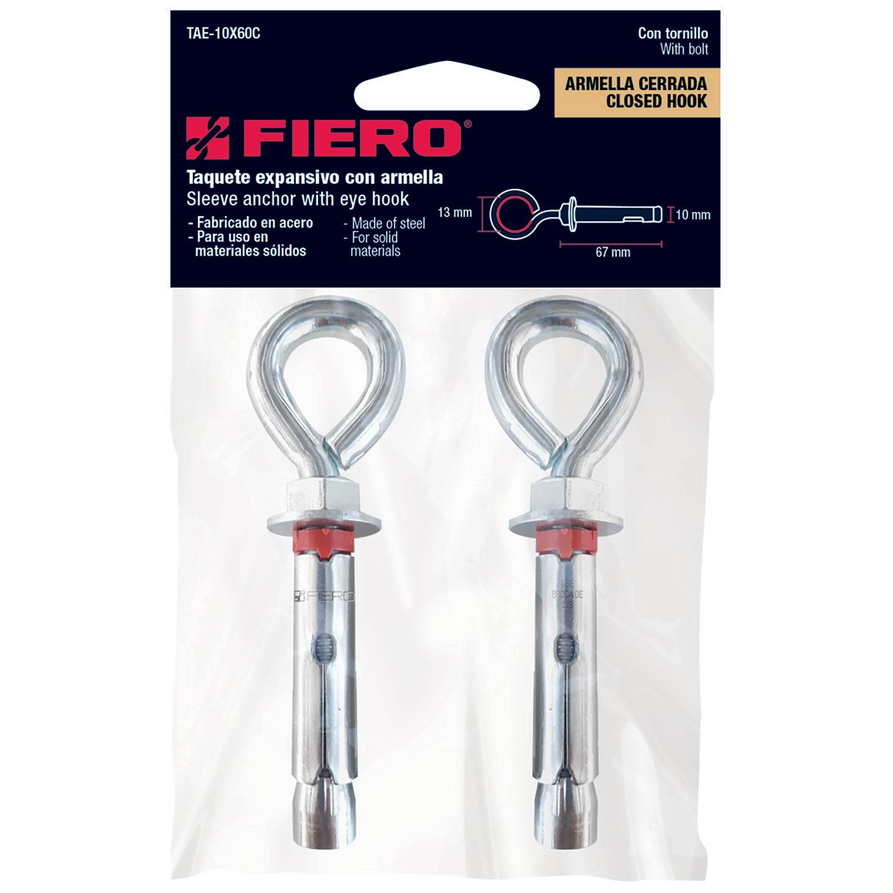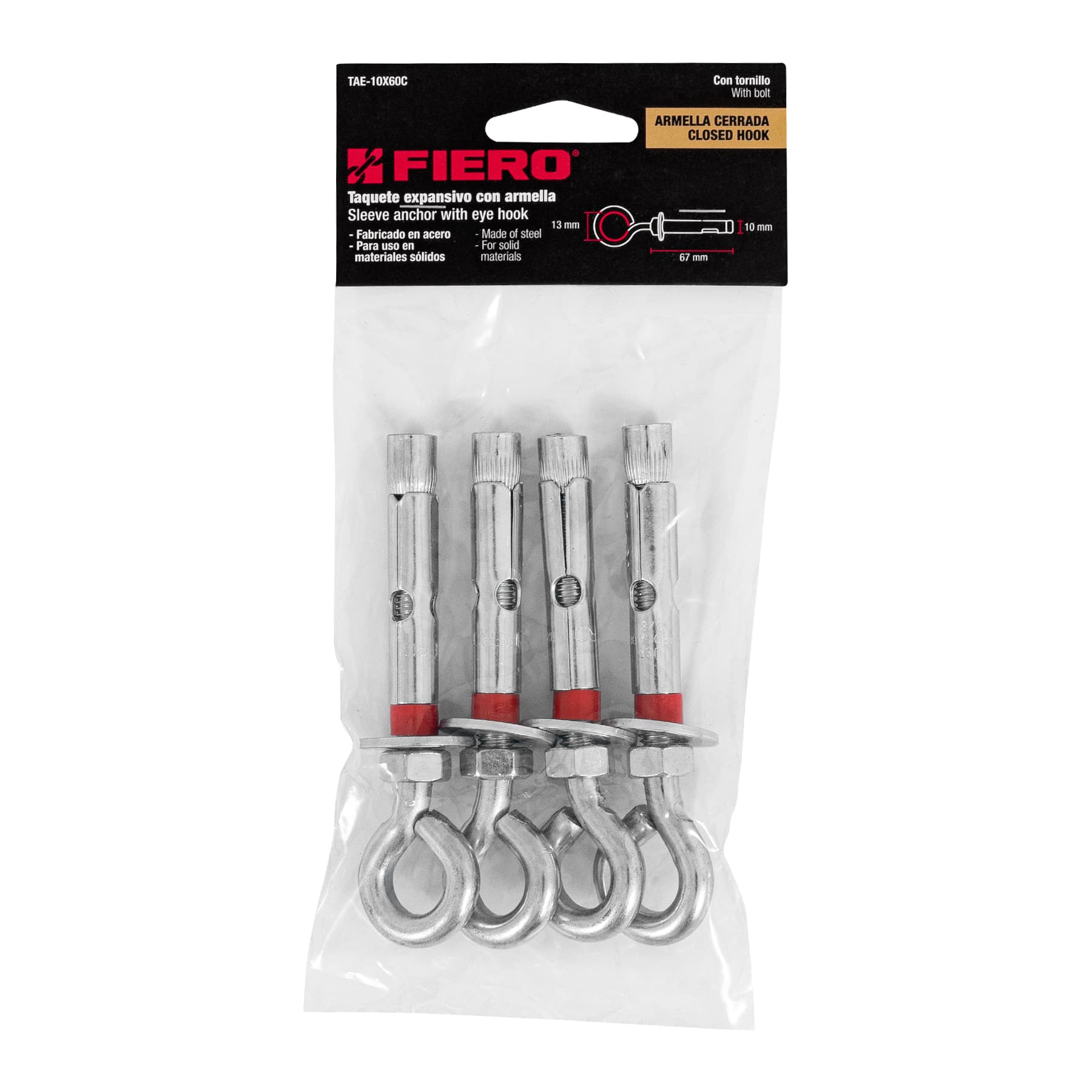 Taquete expansivo con armella cerrada, 10X60 mm, bolsa 4