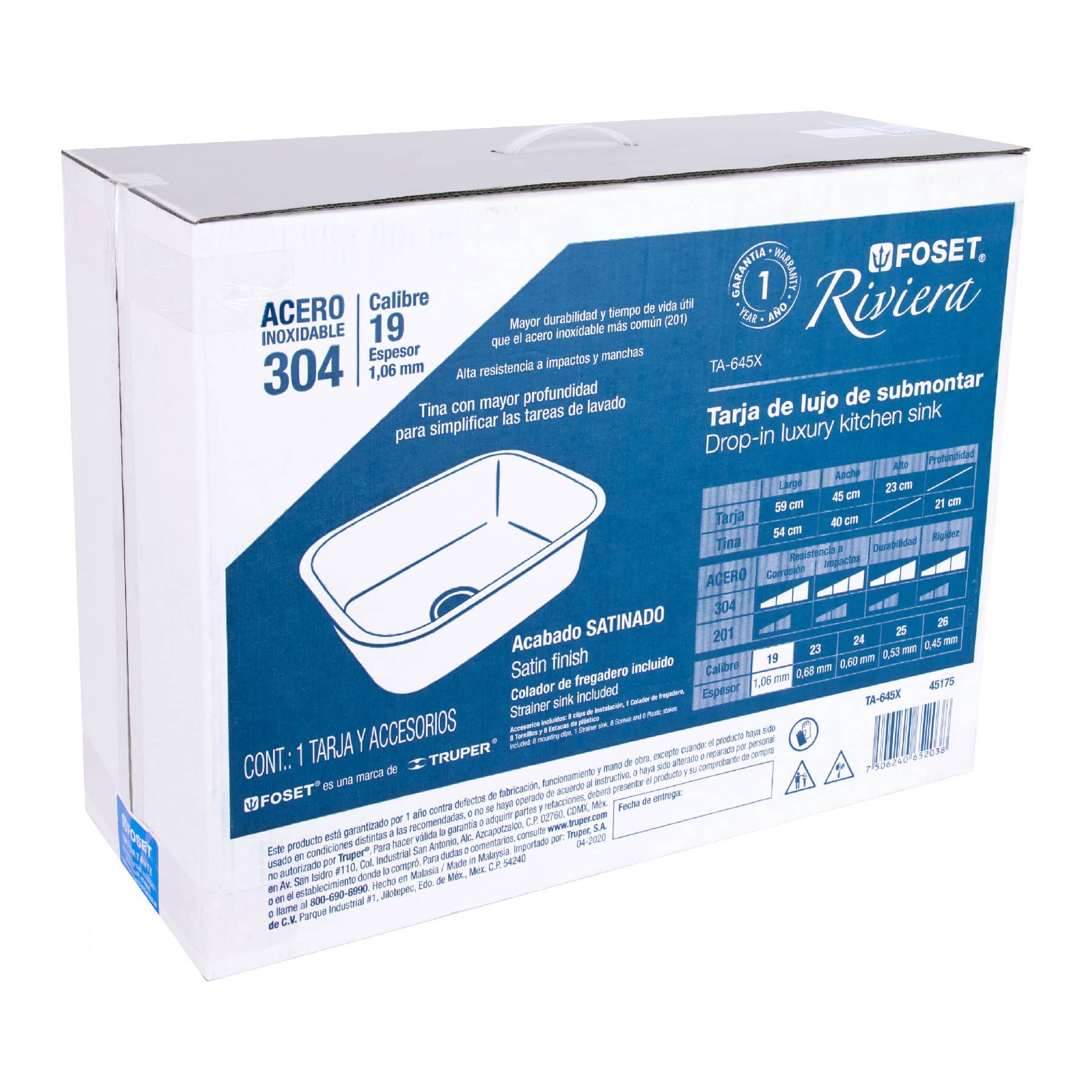 Tarja de lujo, submontar, 59x45x23 cm, doble tina, Riviera