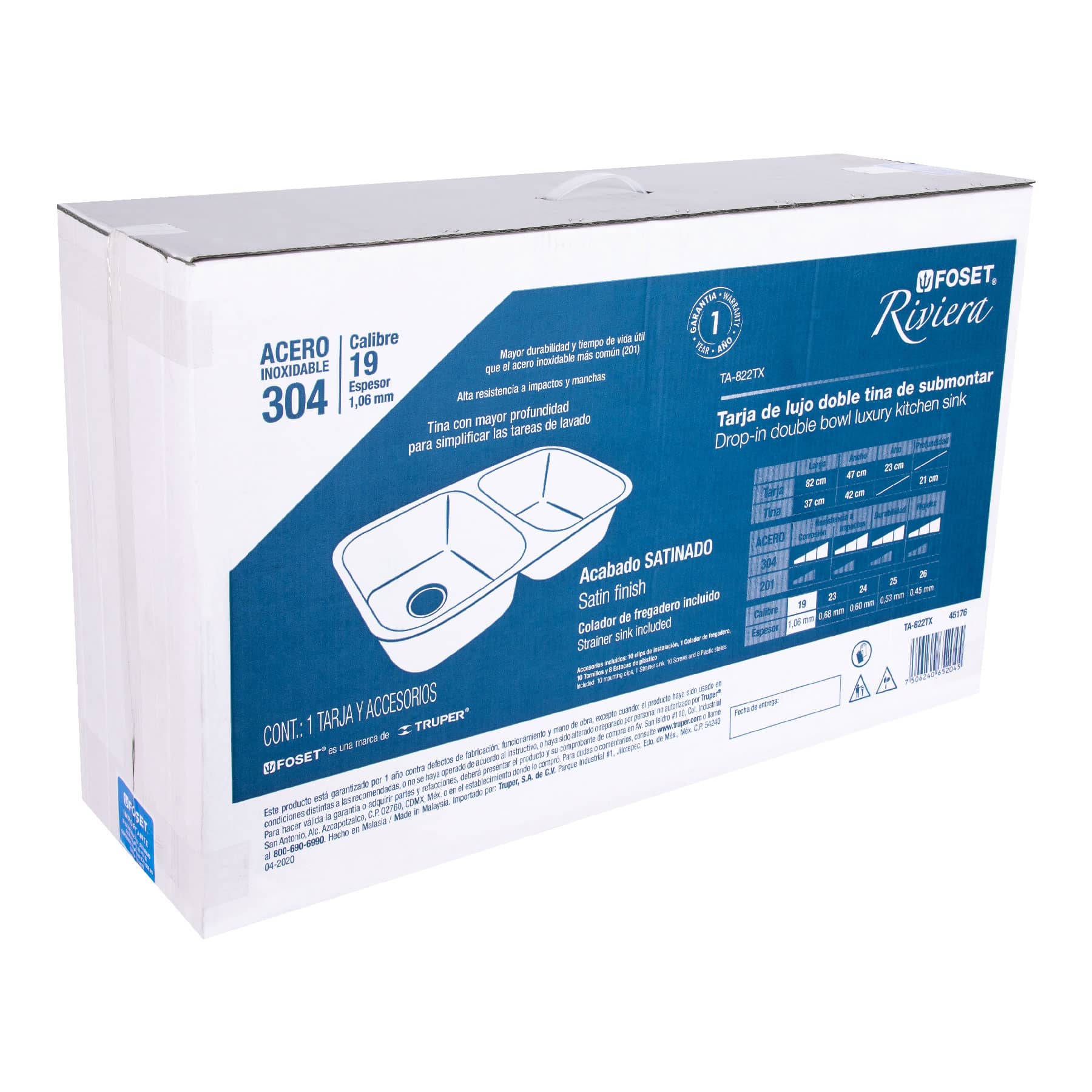 Tarja de lujo, submontar, 82x47x23 cm, doble tina, Riviera