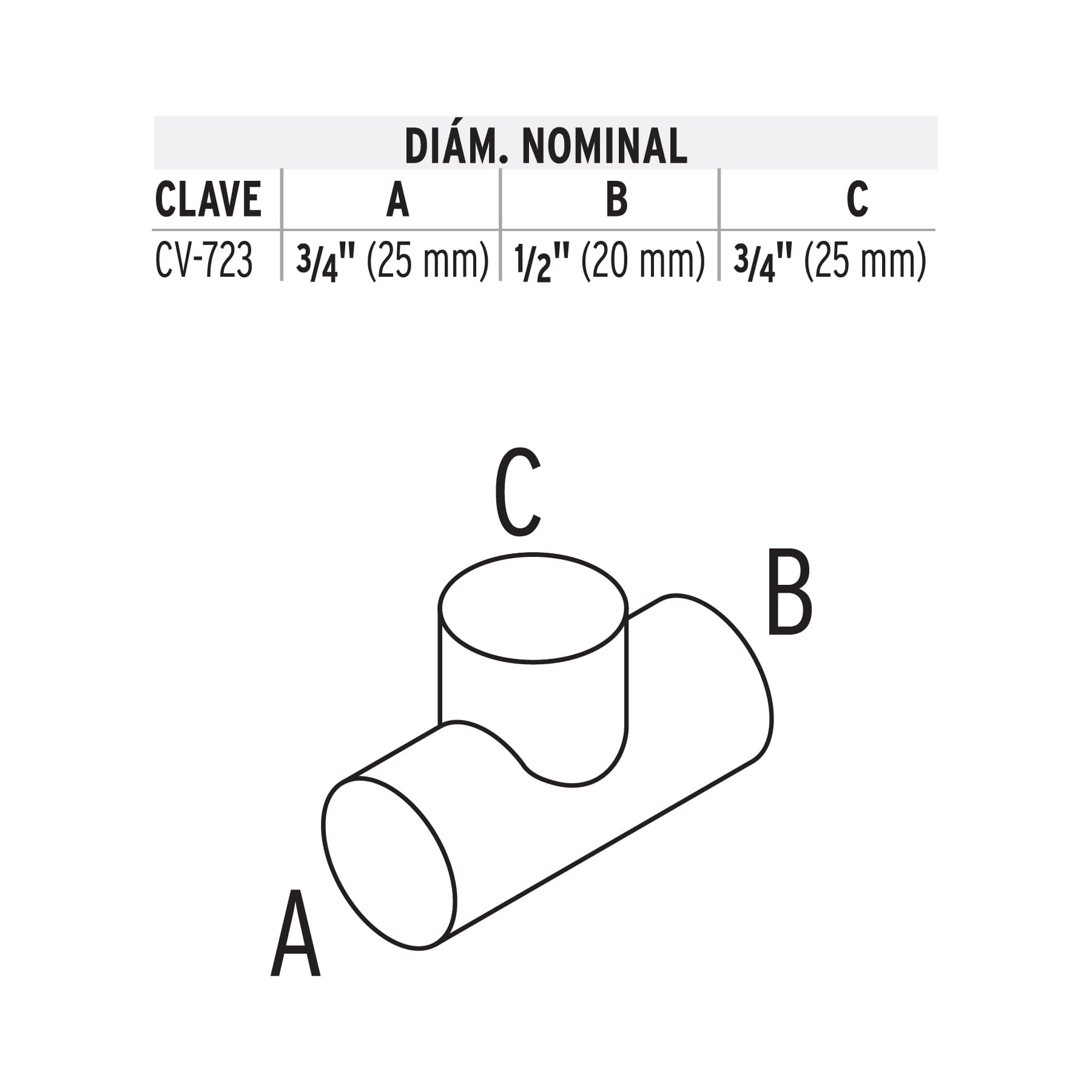 Tee de PPR reducida, 3/4"x1/2"x3/4", 25x20x25mm