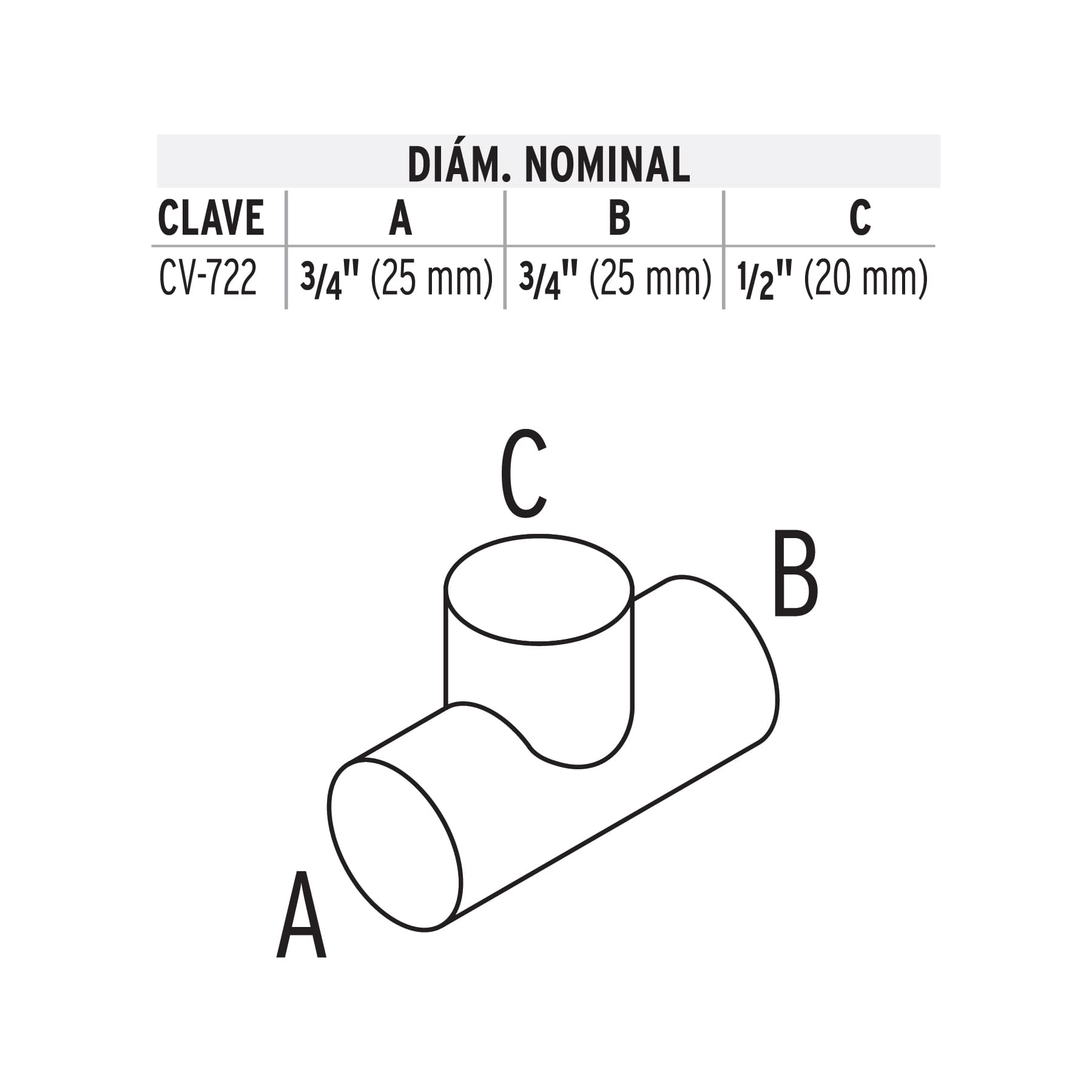Tee de PPR reducida, 3/4"x3/4"x1/2", 25x25x20mm