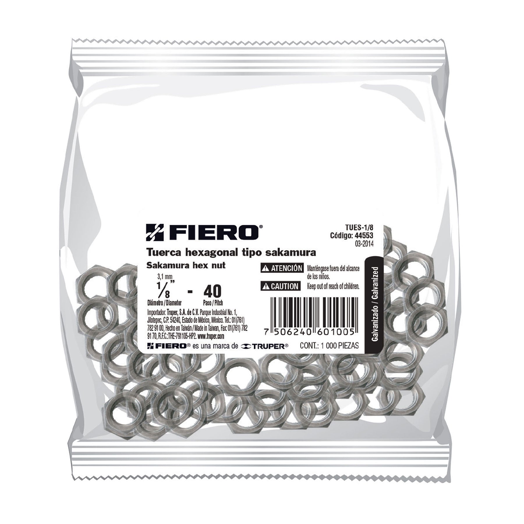 Tuerca hexagonal tipo sakamura de 1/8", bolsa con 1, 000 pzas